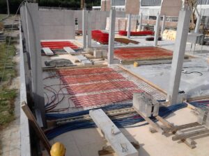 Da in Industriegebäuden der Boden sehr belastbar sein muss, werden die Heizungsrohre direkt im Betonboden verlegt. Das heisst der weniger tragfähige Unterlagsboden fällt weg.