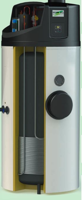 Heim AG 300 Liter mit integrierter Wärmepumpentechnik COP 3.8. Maximale Wassertemperatur 55°C, steckerfertig 230V 13A, Höhe: 167 cm, Durchmesser: 70 cm